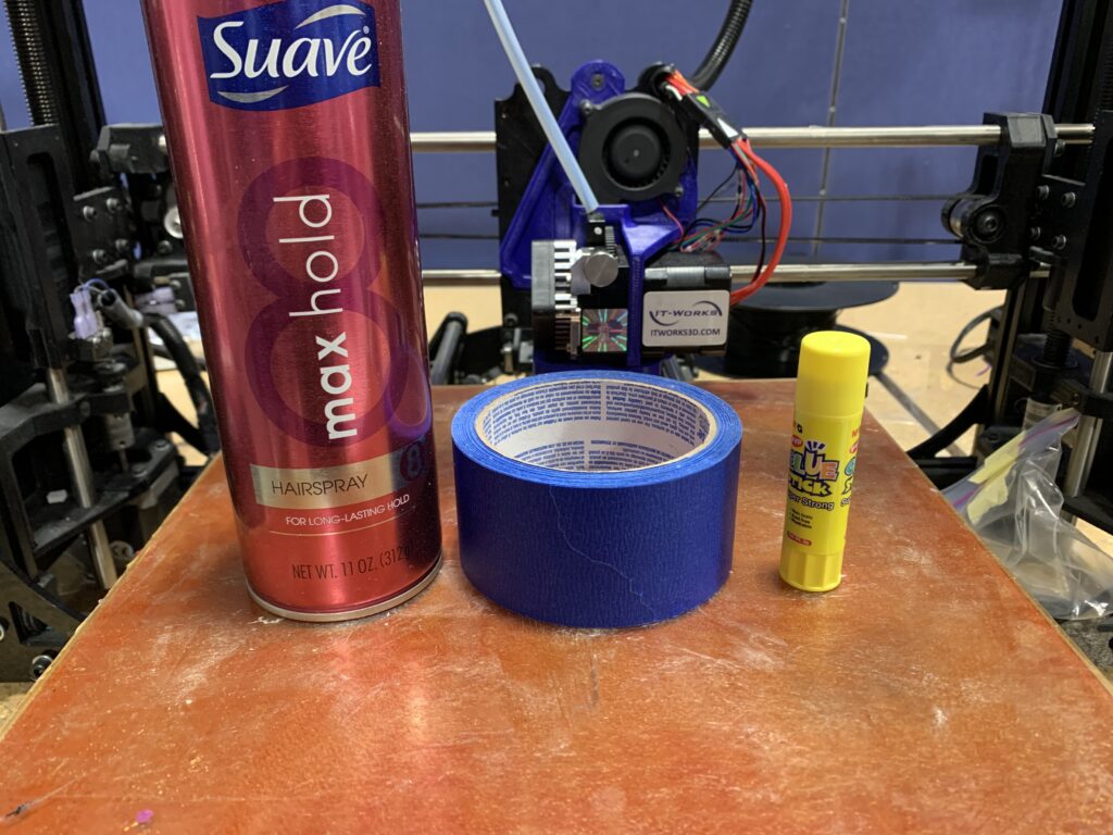 Different kinds of adhesive can be applied to beds to help with adhering. Some of these include: blue tape, hair spray, and a glue stick, amongst others. Check with the filament manufacturer to see what is best for the material.