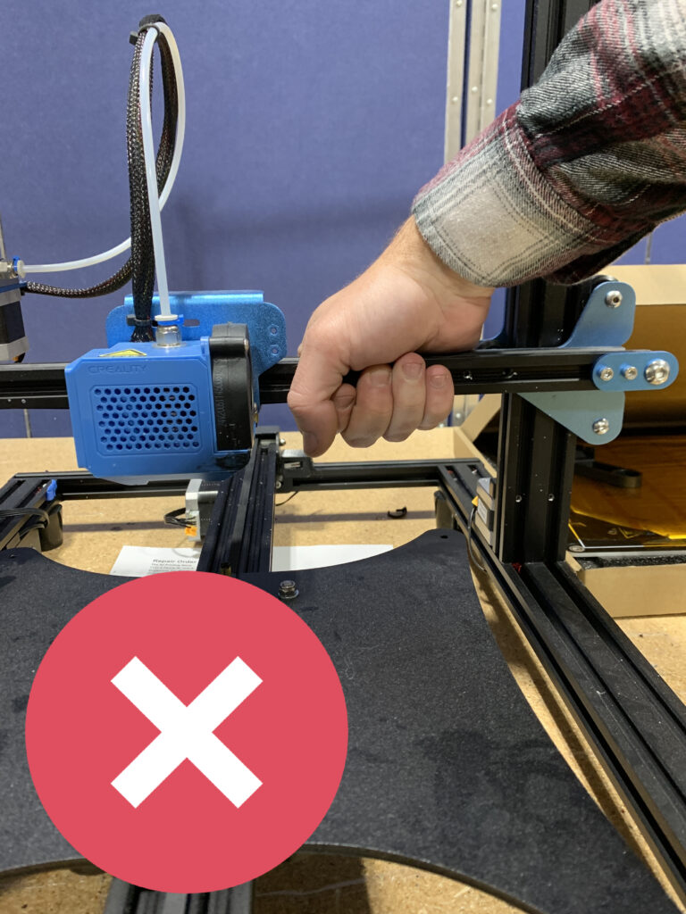 If you need to move an axis by hand, power the printer off and remove the power cord and move the axis/ assembly slowly to desired location .