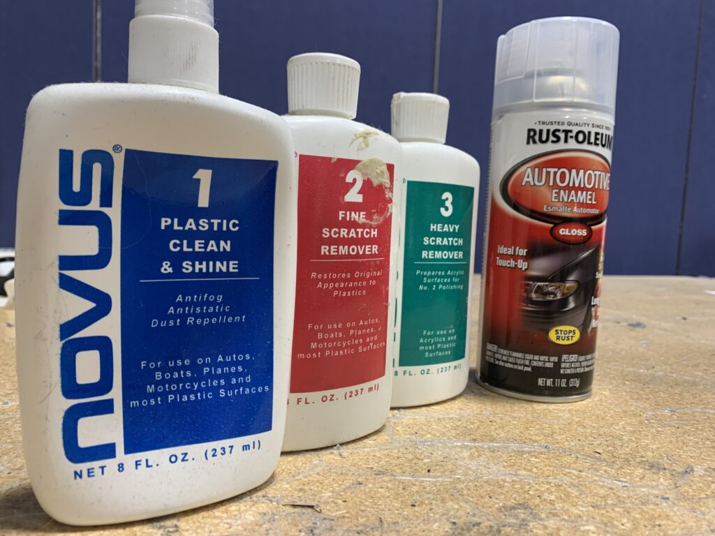 After the clear coat has properly cured for the manufacturer’s recommended time, you can polish the clear coat to the desired finish. If you are looking for a high shine finish, it is recommended to use a glossy clear coat. Wet sand this clear coat using a sandpaper grit of 600 or more. Eventually move from sand paper to a polish compound such as Novus ™ product and use their hierarchy of polishes.