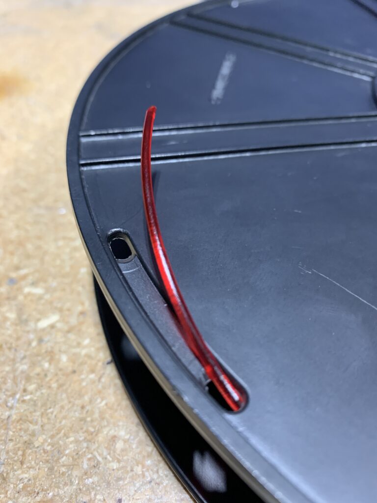 *Tip: Make sure to attach the end of the filament to the spool so it does not become entwined with itself. Some spools have some holes which you can insert the end of the filament into.